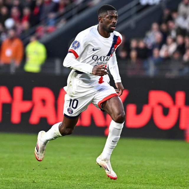 本场比赛大巴黎沿用433阵型,登贝莱、克瓦拉茨赫利亚和杜埃联袂三叉戟,维蒂尼亚、若昂-内维斯和埃梅里形成三中场,阿什拉夫、努诺-门德斯、扎巴尔尼和帕乔搭档后防线,萨福诺夫担任门将。